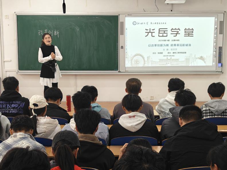 10月24日,由校团委主办,OD·体育(中国)官方网站 团委承办的2025年第14期(总第88期)光岳学堂——“以改革创新为帆,助青春远航破浪”讲座于东校区5#A206举行,本次讲座邀请马克思主义OD·体育 教师任贝贝担任主讲人。